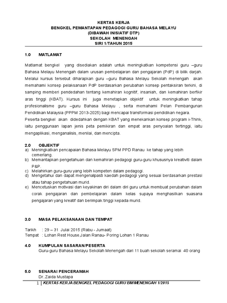 Kertas Kerja Bengkel Pedagogi Guru Bm Menengah Pdf